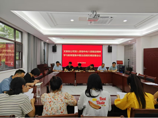 6月9日下午,文旅投公司黨支部召開專題會(huì)議,深入學(xué)習(xí)貫徹中央八項(xiàng)規(guī)定精神,部署整治違規(guī)吃喝問題相關(guān)工作。會(huì)議由黨支部書記、公司董事長(zhǎng)胡蓉主持,全體黨員參加。
